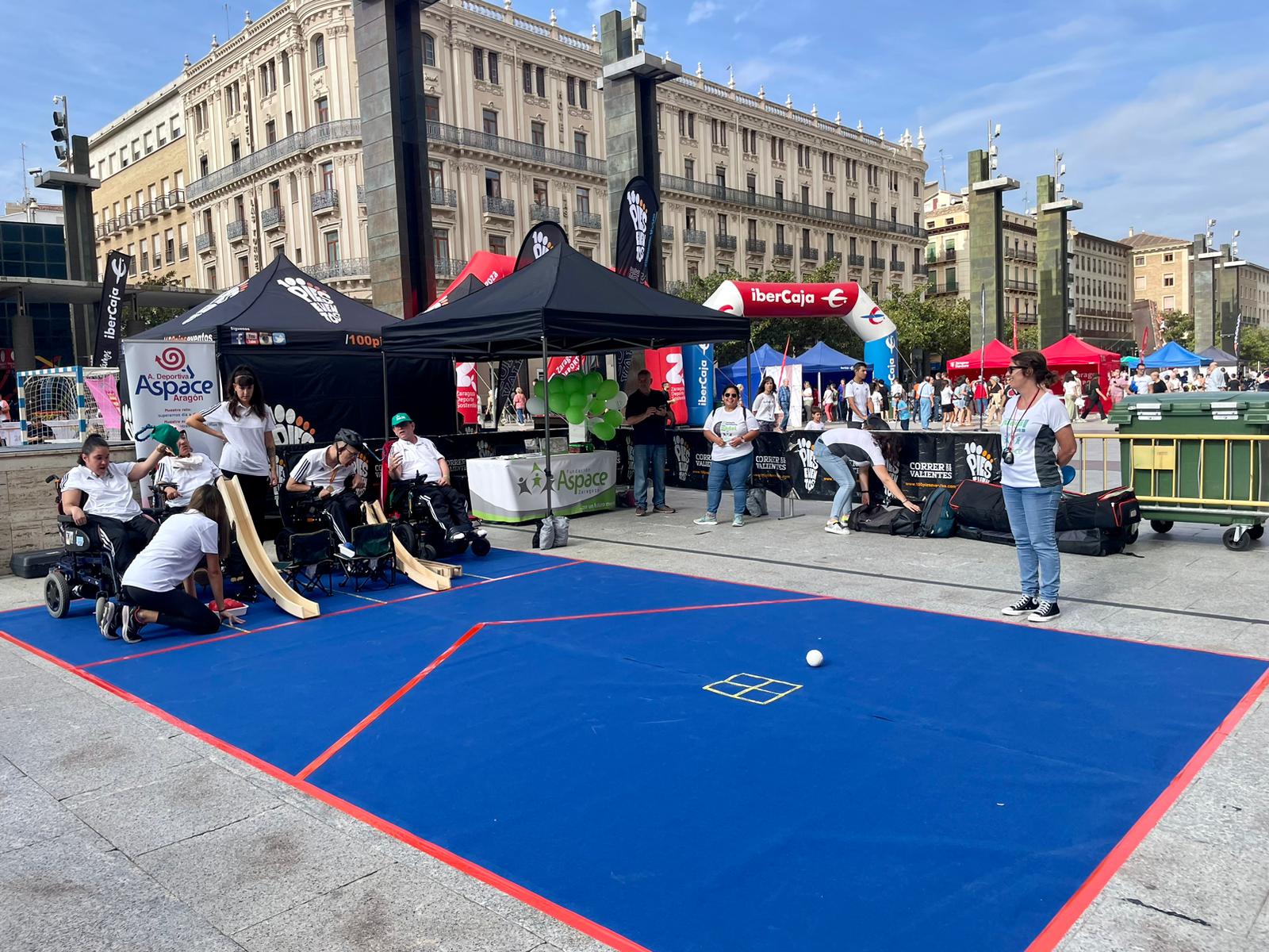 El domingo, los integrantes de ASPACE disfrutaron de una jornada perfecta de deporte en la calle, compartiendo el día en la Plaza del Pilar con otros deportistas y multitud de público.