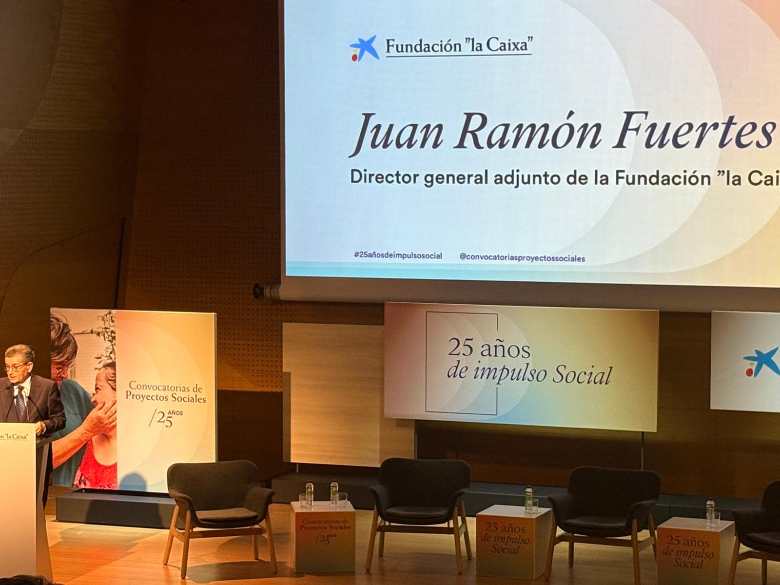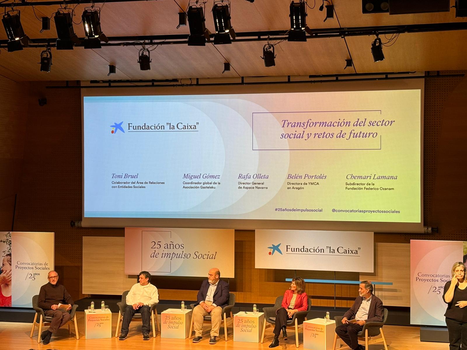 Representantes de ASPACE Zaragoza, junto a otros pertenecientes a ASPACE Huesca y ASPACE Navarra, participaron ayer en la celebración del 25 aniversario de las convocatorias sociales de la Fundación la Caixa en CaixaForum Zaragoza. Este evento sirvió para reconocer la importante labor que la entidad financiera ha realizado durante estas dos décadas y media en apoyo a proyectos sociales como los desarrollados por ASPACE.