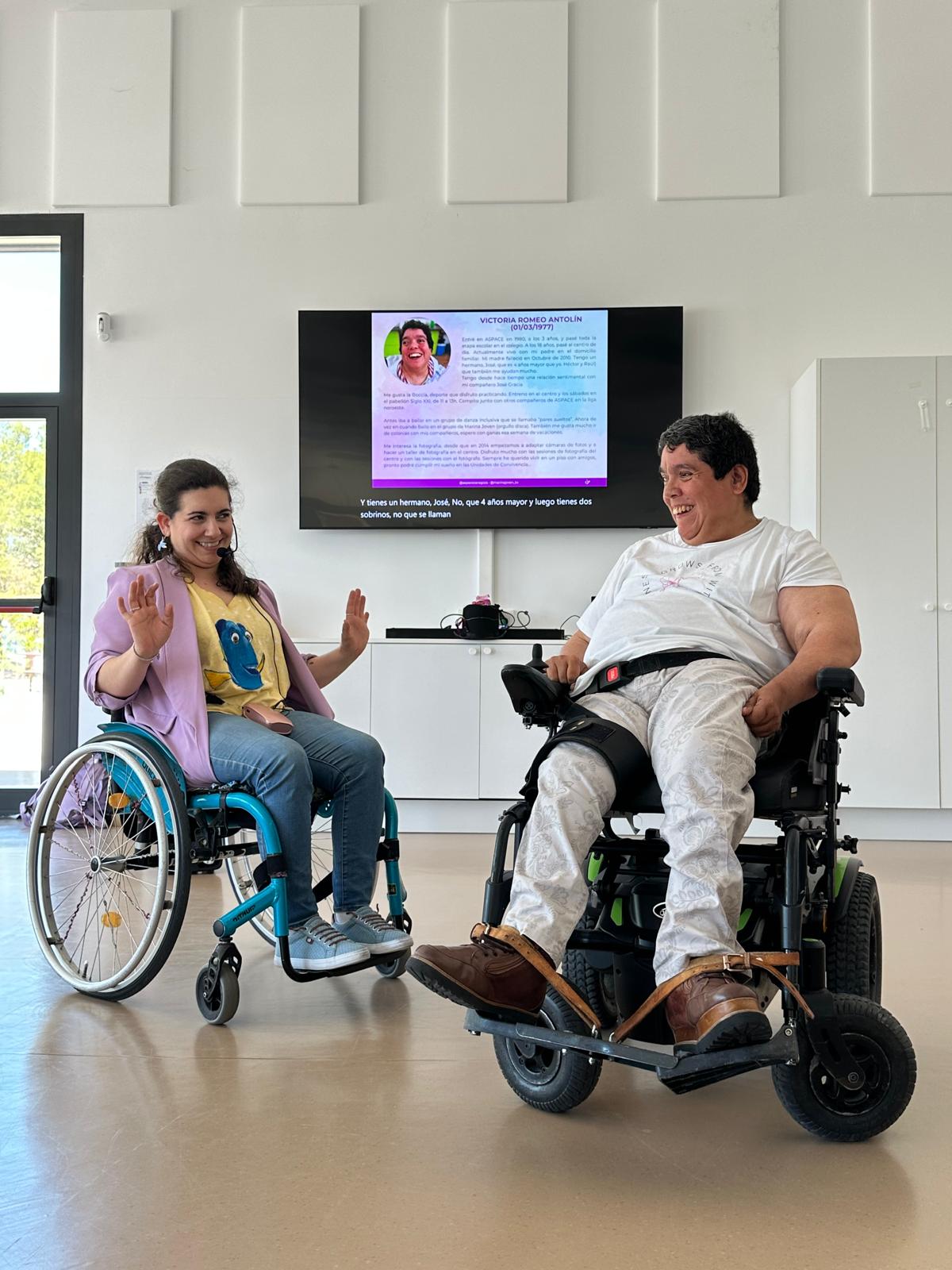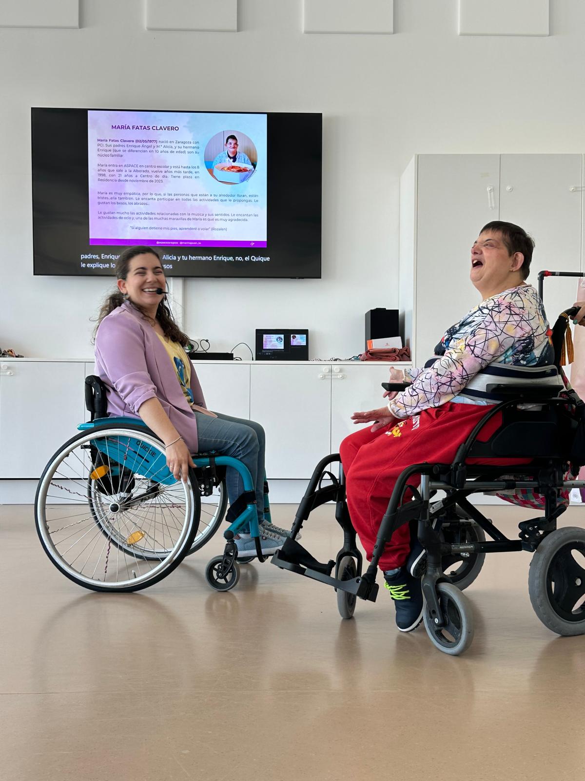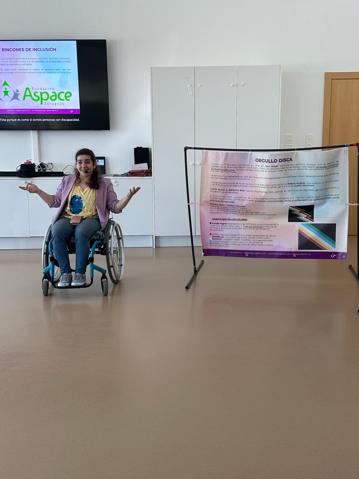 La gran sorpresa de la jornada ha llegado cuando Marina ha compartido las historias personales de cuatro compañeras de Fundación ASPACE Zaragoza. Esta explicación, cercana y directa, buscaba ofrecer a los asistentes referentes reales y próximos dentro del ámbito de la discapacidad.
