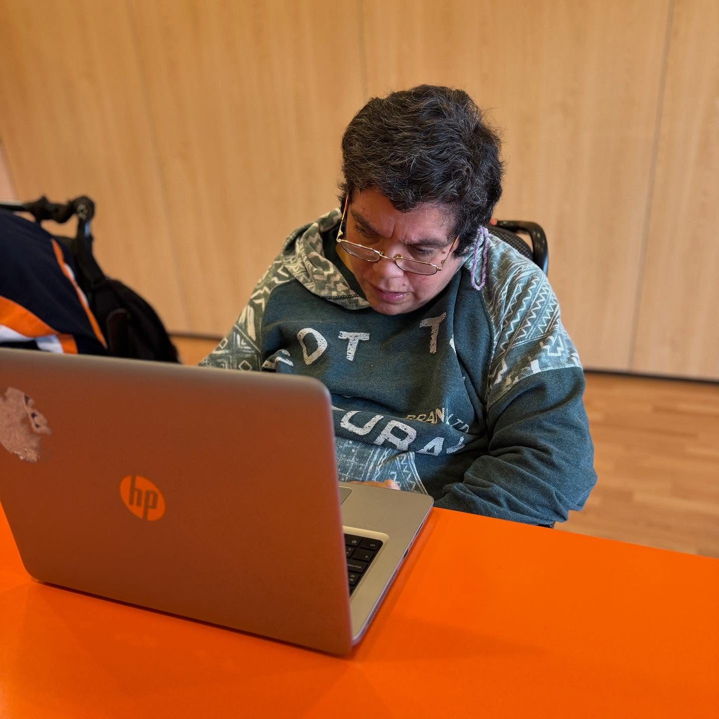 Dos de las personas usuarias, Viky y José, están trabajando activamente en el análisis, la creación de contenidos y el aprendizaje de nuevas herramientas digitales, desarrollando estas tareas en el aula TIC, como parte de su formación y participación en los proyectos de la Fundación.