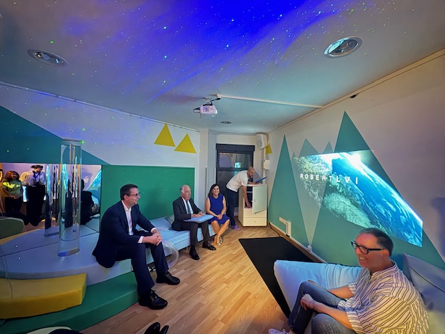 El presidente de Ibercaja Banco y el director general de la Fundación Ibercaja visitaron las instalaciones del centro y conocieron la tecnología que ASPACE ha podido implantar gracias al programa “Tu dinero con corazón”.