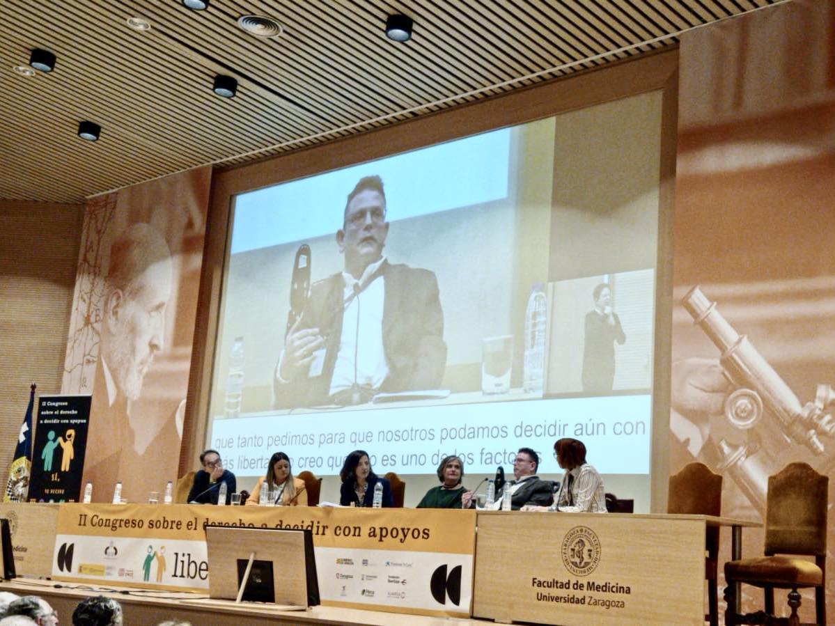 El jueves 7 de marzo, el Salón de Grados de la Facultad de Medicina de la Universidad de Zaragoza acogió el II Congreso Estatal sobre el Derecho a Decidir con Apoyos organizado por la Asociación Liber, en el que las personas con discapacidad formaron parte en las mesas redondas, los talleres de aprendizaje y redactaron la ponencia de clausura del Congreso.