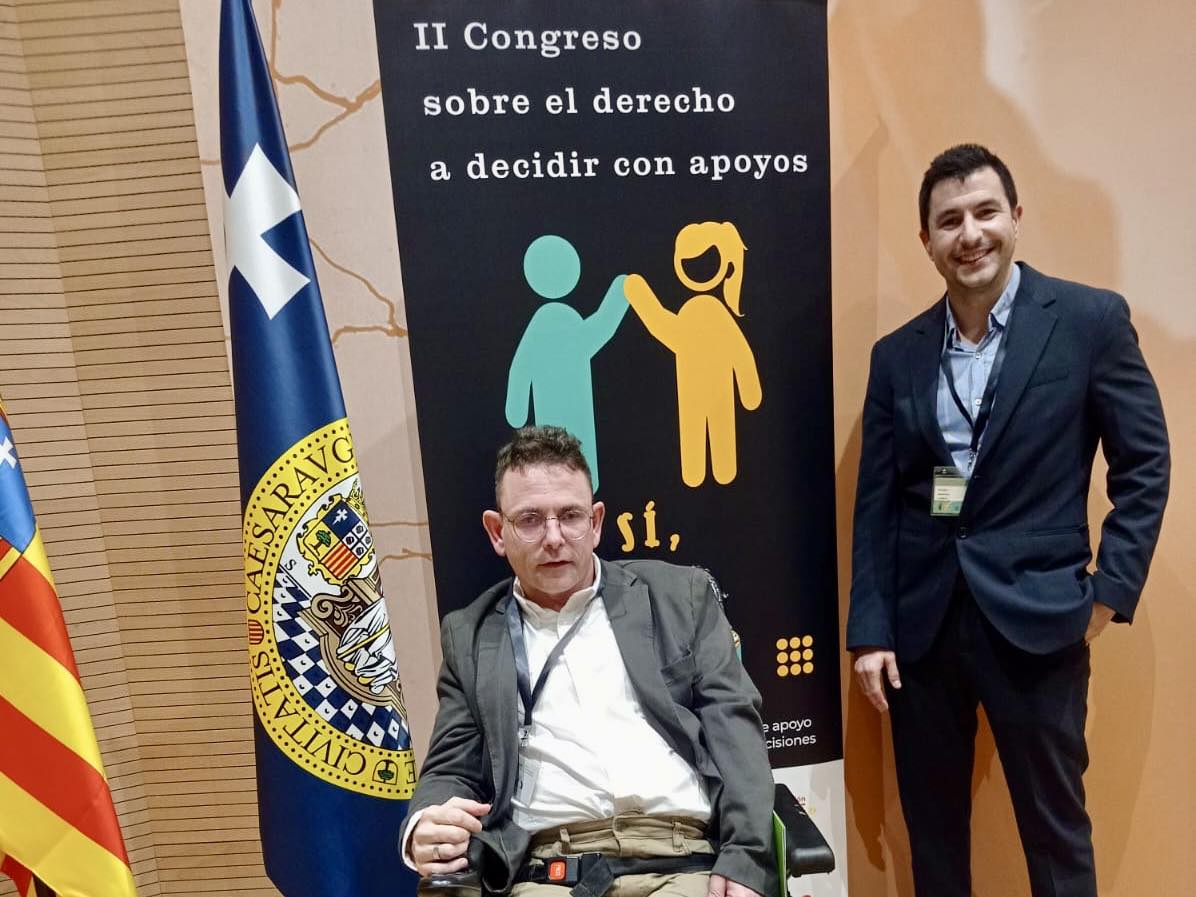Óscar Alijarde, usuario de Fundación ASPACE, apoyado por Pablo Escanero, abogado de la entidad, participaron en la mesa redonda “Problemas y soluciones en la toma de decisiones”, donde, junto con otros ponentes de alto prestigio, debatieron acerca de la toma de decisiones de las personas con discapacidad y la necesidad de precisar apoyos en momentos puntuales.