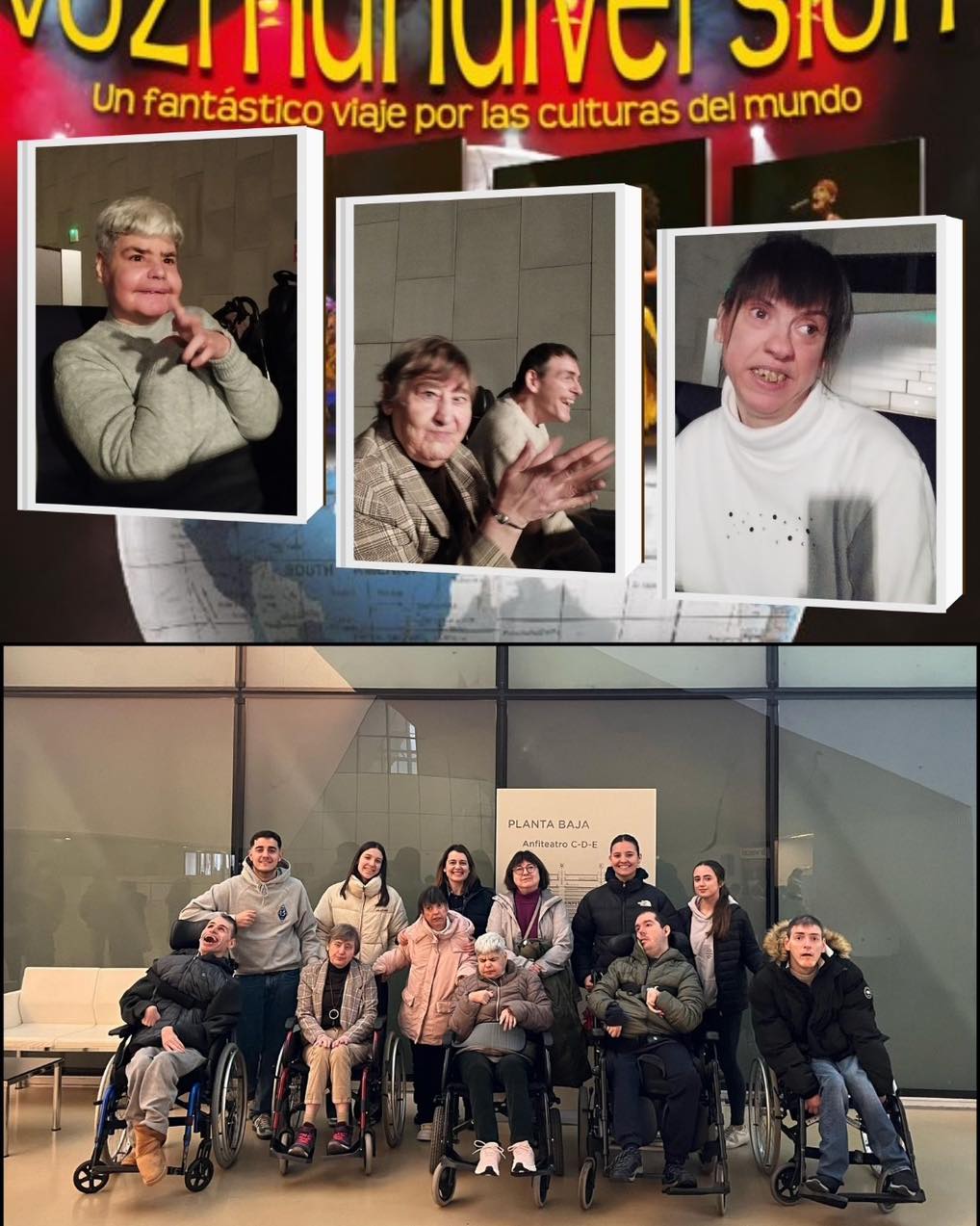 Durante una hora en el Palacio de Congresos de Zaragoza, y gracias al grandioso proyecto de b vocal, los usuarios de Fundación ASPACE Zaragoza, a través de las voces y el humor del grupo musical, han viajado a culturas exóticas y desconocidas como la china, la hindú, la árabe o la africana, que conviven y demuestran toda su riqueza sonora y visual junto con ritmos americanos o europeos.